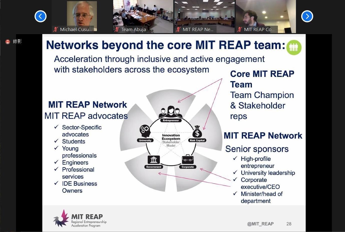 原定於十月份在波士頓辦理的麻省理工學院區域創業加速計畫(MIT REAP)工作坊,因受全球疫情影響改為線上進行。MIT REAP 新北市代表團偕同應屆城市,包括奈及利亞阿布賈、丹麥、日本福岡市、沙烏地阿拉伯哈伊勒等學員,以網路連線的方式參與課程。除了即時與麻省理工史隆管理學院(MIT Sloan School of Management)業師及國際城市代表討論疫情肆虐下的區域經濟發展如何復甦之外,來自不同地區的代表團更擬定了各具地方特色的發展目標與策略,透過與 MIT 導師團隊們的深入分析與討論,擘劃行動策略以打造獨具城市特色的創新創業生態系。