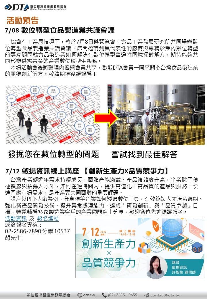 - 7/08 數位轉型食品製造業共識會議