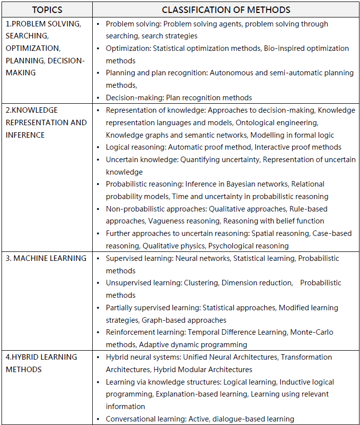 表1:AI方法的分類表