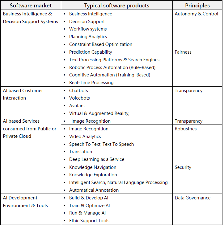 表3:軟體市場和典型 AI 應用概述表