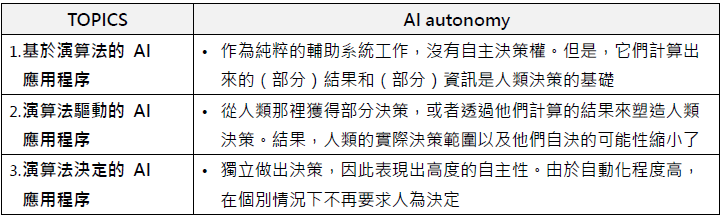 表4:AI autonomy基於演算法之決定全分類表